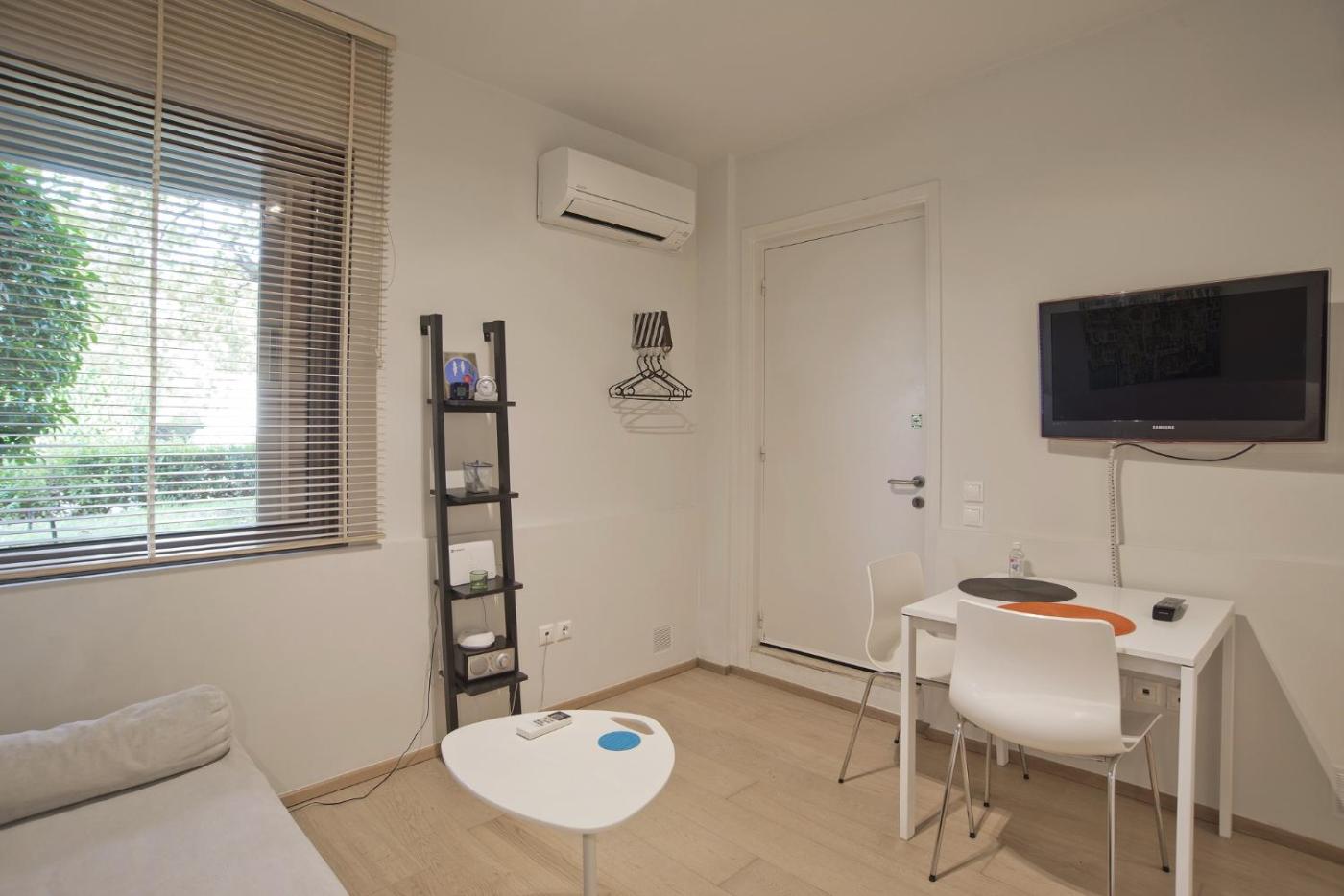 Studio Apartment. The air-conditioned apartment has 1 bedroom and 1 bathroom with a shower and a hairdryer. The well-fitted kitchen features a refrigerator, kitchenware, an oven and a tea and coffee maker. This apartment features heating and a TV. The unit has 1 bed.